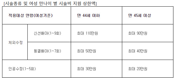 비급여 : 배아동결비는 최대 30만 원, 착상유도제 및 유상 방지제는 각각 20만 원까지 지금 가능